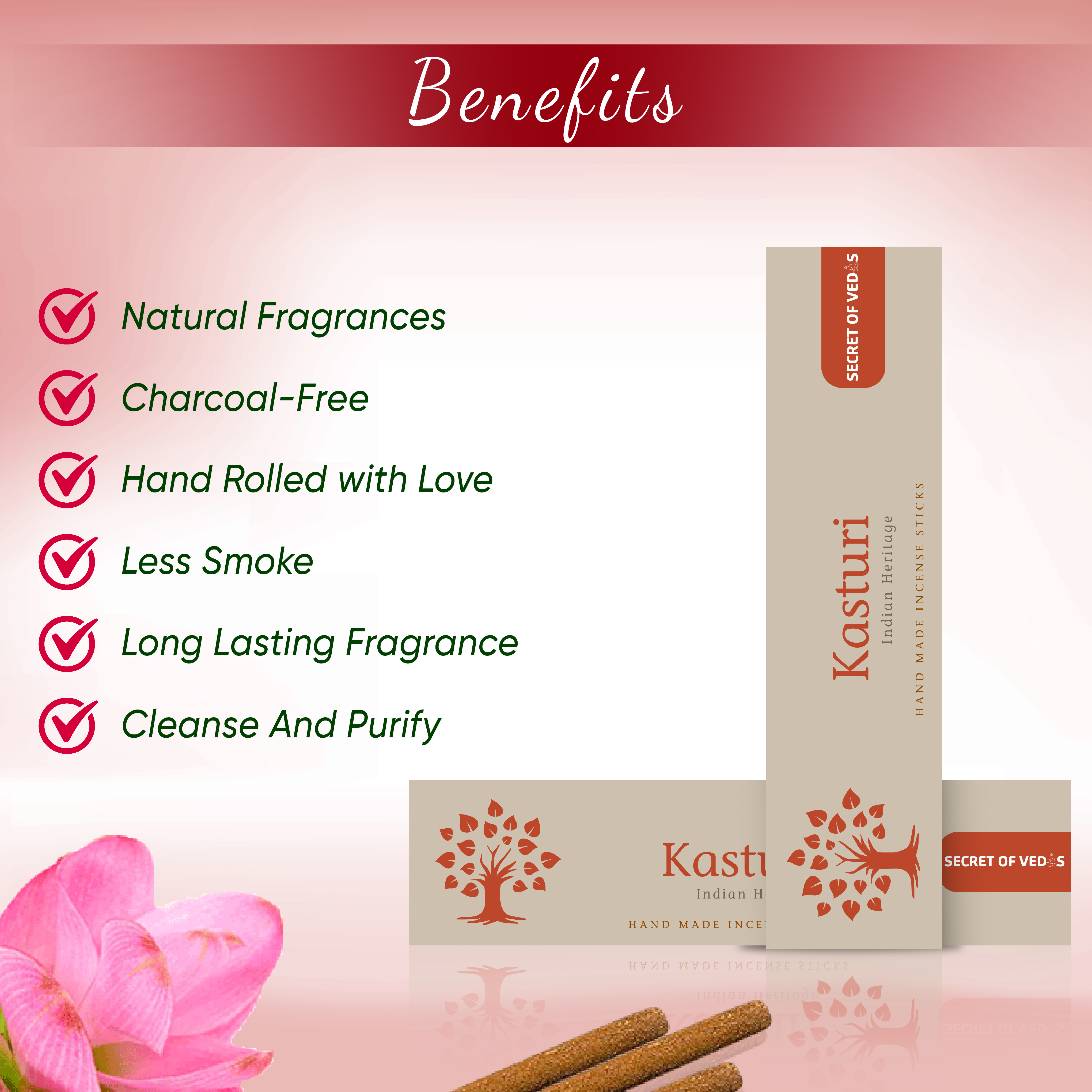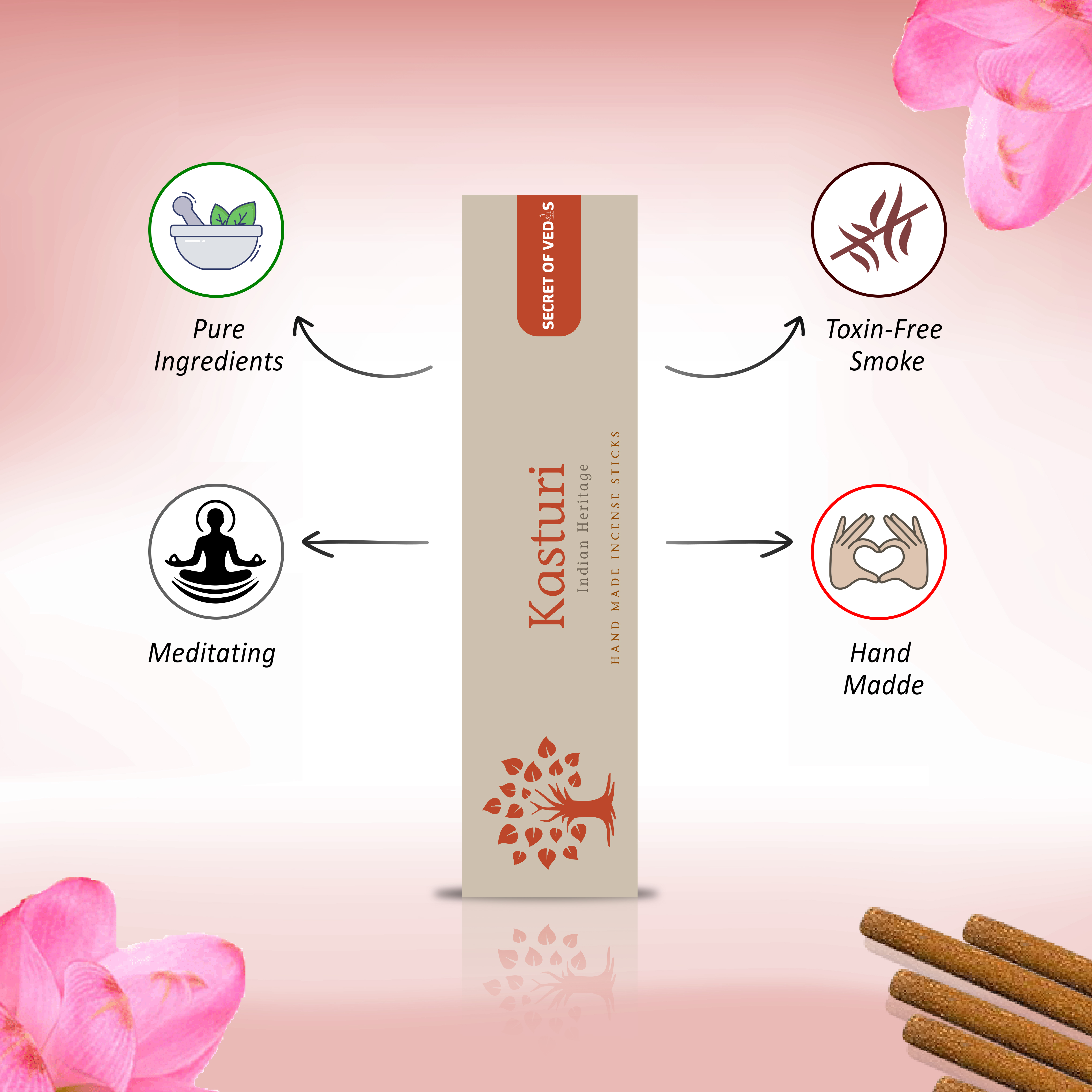 Kasturi Agarbatti offers a rich and authentic fragrance inspired by traditional musk scents, perfect for creating a calming and serene atmosphere. Crafted with carefully selected natural ingredients, these incense sticks provide a long-lasting burn and a balanced aroma that enhances meditation, relaxation, and spiritual practices. Ideal for use in homes, temples, or yoga spaces, Kasturi Agarbatti helps purify the environment while promoting mental clarity and tranquillity.